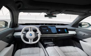 Внатрешноста ги носи најголемите промени. Дебитира системот на БМВ „панорамски ајдрајв“ со проекција преку целата шофершајбна и 17,9-инчен екран. Нов е и стандардниот 14,6-инчен екран за патникот кој поддржува стриминг и игри, а внатрешната камера автоматски го затемнува ако возачот погледне настрана.