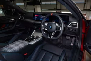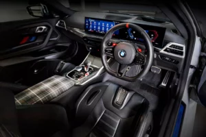 Внатрешноста добива спортски M спорт седишта со контрастни шевови и централен потпирач за грб покриен со Уберкаро тартан ткаенина, истиот дезен кој се појавуваше на спортските модели на E30 како 318иС, 320иС и оригиналниот 325иС.
