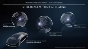 Една од најиновативните технологии вградени во вижн ајконик е соларната боја, фотоволтаичен активен слој кој ја претвора сончевата светлина во енергија. Под идеални услови, 11 квадратни метри површина можат да произведат доволно енергија за дополнителни околу 12.000 километри годишно, во зависност од локацијата и условите на осветлување.