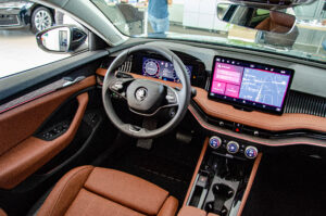 Новата, чиста и пространа внатрешност уште повеќе ги користи одржливите материјали и доаѓа со особено интуитивен концепт на контрола кој вклучува смарт дајалс на Шкода и ЧетГПТ.