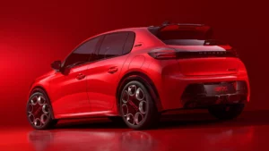 208/e-208 е развиен околу верзија на платформата e-ЦМП на Стелантис што се користи кај автомобили како фиат 600 и алфа ромео јуниор, па затоа не е изненадувачки што e-208 ГТИ има многу заеднички карактеристики со спортската електрична верзија на тие автомобили – абарт 600e скорпинисима и алфа ромео јуниор велоче.