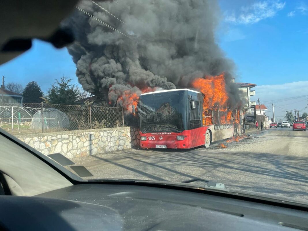 Според сведоци на настанот, автобусот е во близина на приватни куќи и дрвја и постои опасност да се прошири. На терен се излезени екипи од противпожарната бригада.