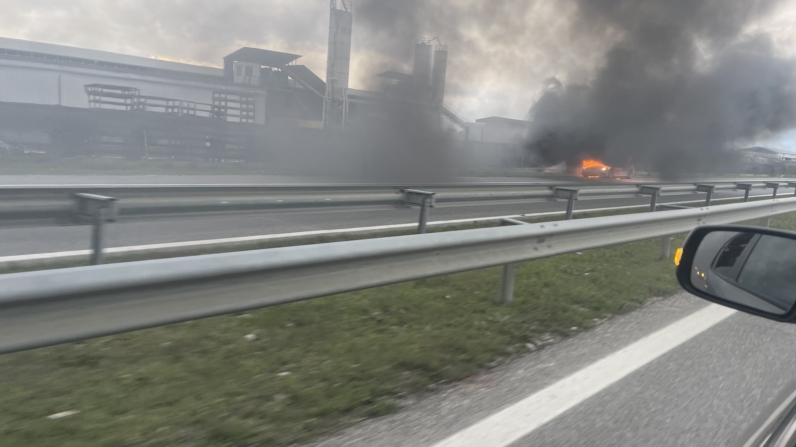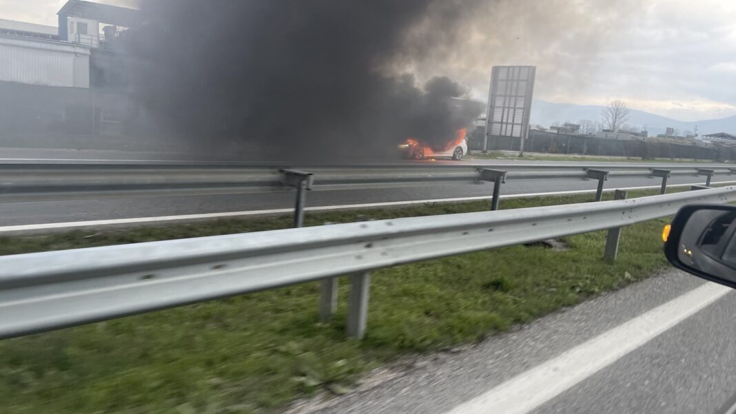 Според фотографиите што ни ги испратија наши читатели, автомобилот се запалил во возење во близина на индустриски објекти на автопатот Скопје-Тетово.