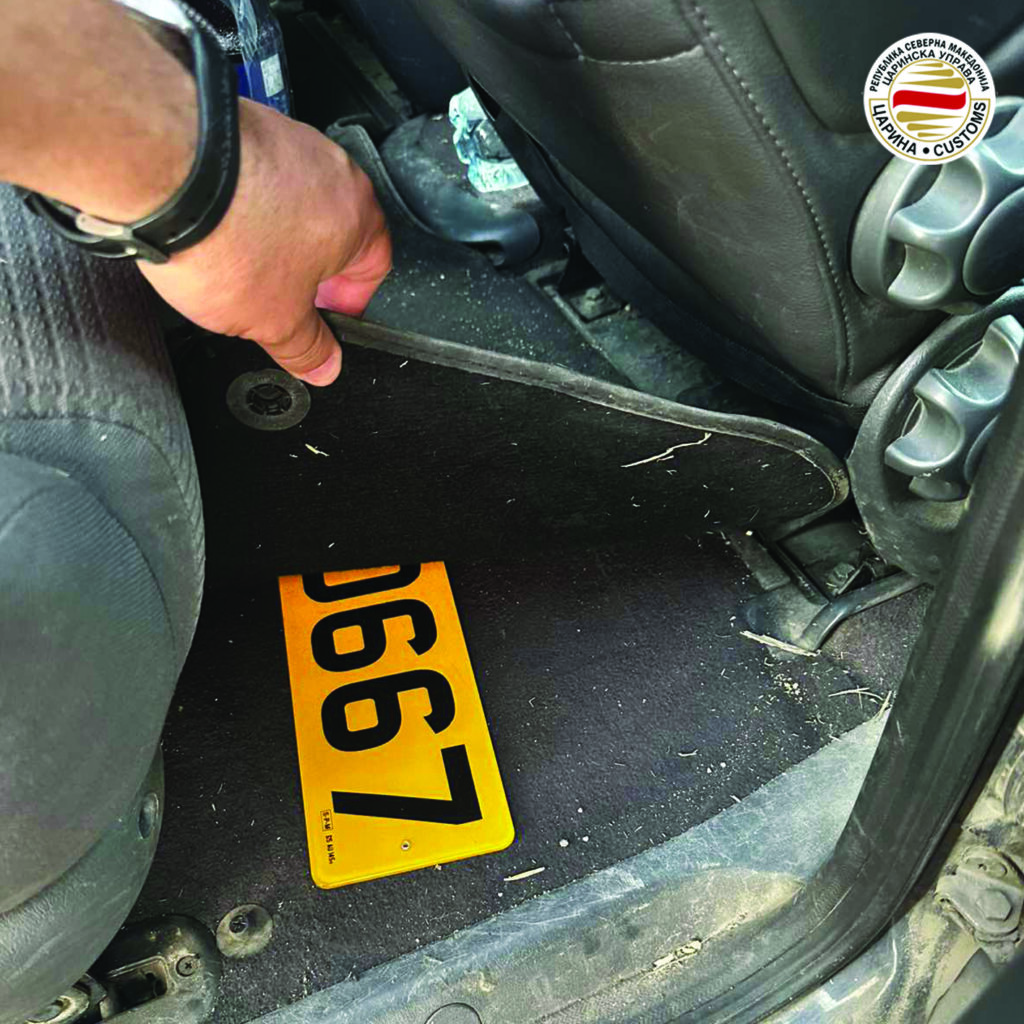 При контрола на автомобил на граничниот премин Табановце на влез во држвава од страна на мобилните тимови, пронајдена е британска регистарска табличка и сообраќајна дозвола за камп приколка. Непријавените предмети биле пронајдени под патосницата зад совозачкото седиште и во задниот џеб на совозачкото седиште, соопшти Царинската управа.