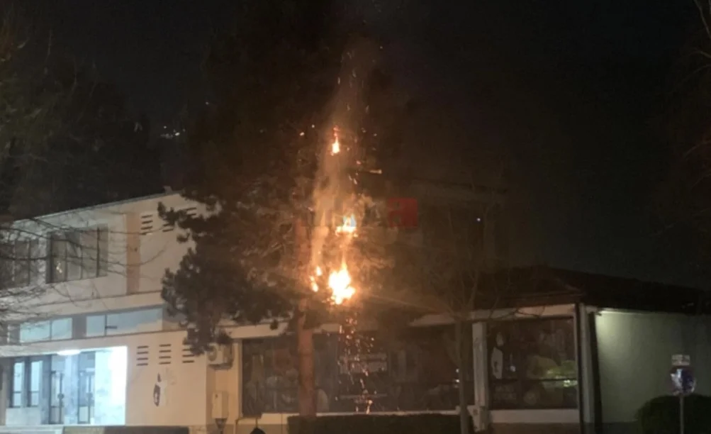 „На снимките од надзорните камери видов дека пожарот настана откако деца кои застанати пред објектот запалија пиротехнички материјали, нешто како огномет. Од тоа се запали дрвото, но за среќа веднаш пристигнаа пожарникарите кои за 15-тина минути го изгасија пожарот“, рече Стојчевски.