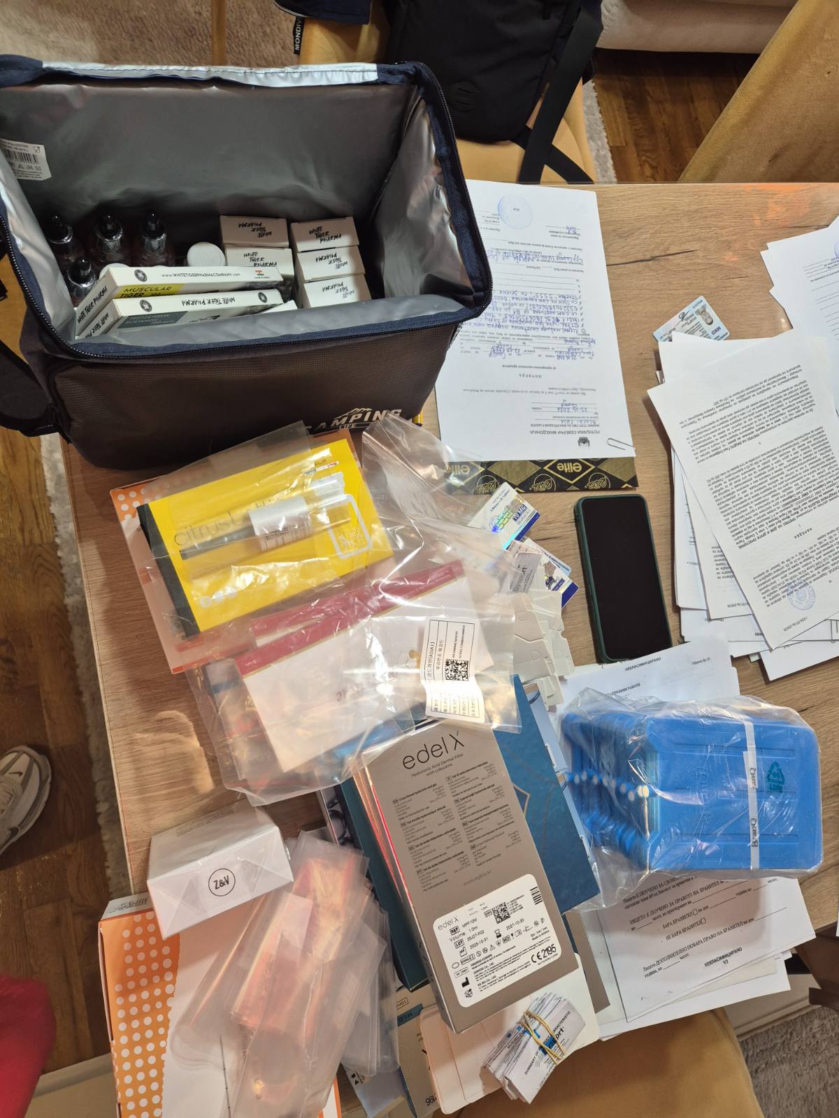 При претресите се пронајдени и одземени поголемо количество медицински лекови и помагала (филери, ботокс, хилурон), 39.285 евра, 2.490 швајцарски франци и 26.000 денари, патничко возило марка „порше“, поголема количина на парфеми и декларации за истите, мобилни телефони, тревкаста материја…