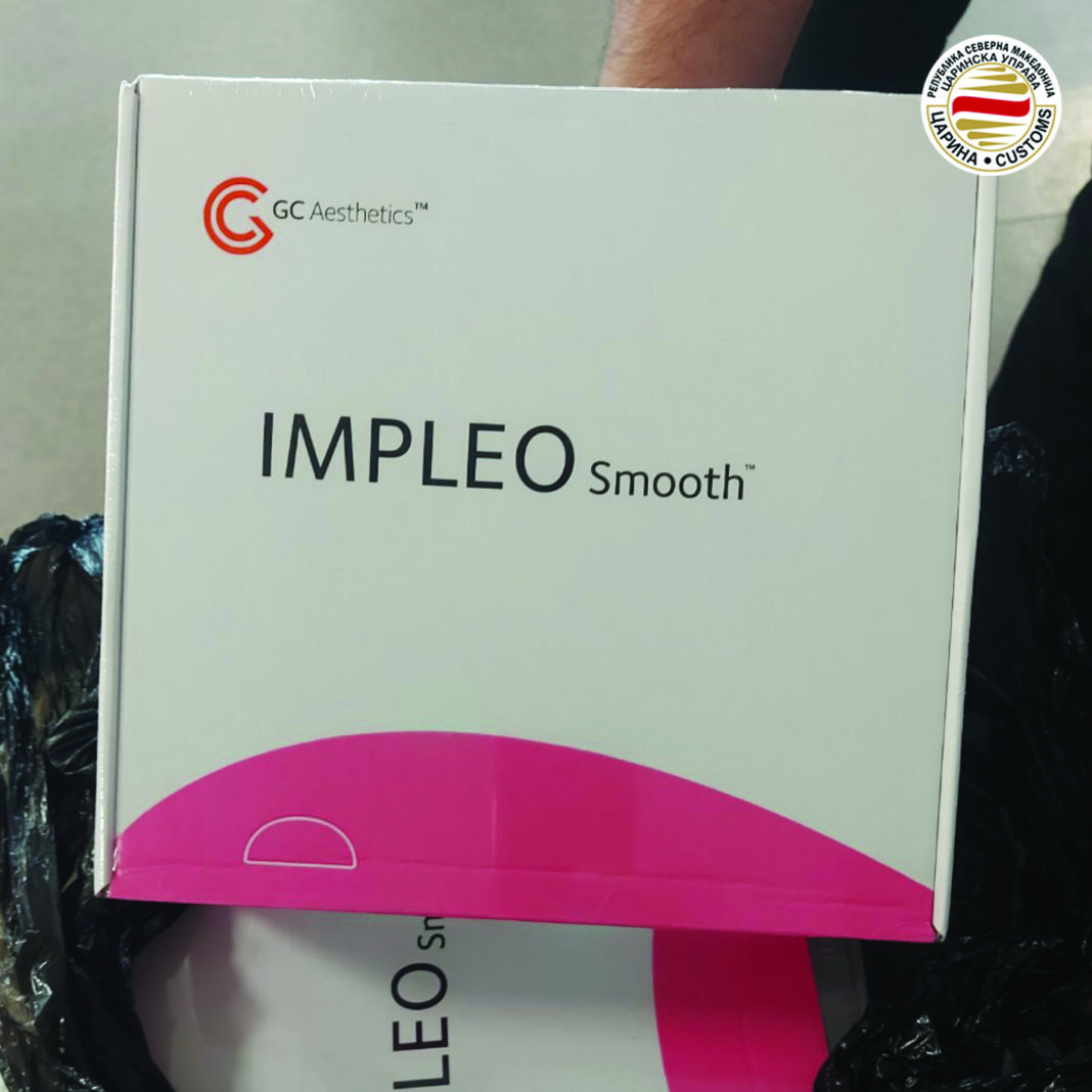 На скопскиот аеродром спречен е и шверц на 9 кутии импланти за гради кои патник, државјанин на Австрија, сакал да ги внесе во државава без да ги пријави. При контрола на патникот, во багажот, во еден од куферите, се откриени непријавените импланти, за која патникот не поседувал ниту дозвола за увоз за таков вид на стока од надлежна институција. Против патникот е поднесена соодветна пријава, а имплантите се запленети.