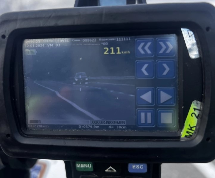 „Полициски службеници од полициската станица за безбедност на патниот сообраќај од СВР Велес, при вршење контрола од областа на сообраќајот, на автопат Пријателство, патен правец Велес-Неготино, меѓу изречените мерки за брзина, санкциониран е возач кој управувал патничко возило со брзина од 211 км/час, на место каде брзината е ограничена на 120 км/час“, информираа од СВР Велес.