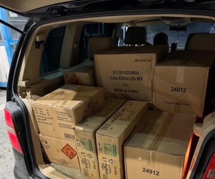 Полицијата вчера, околу 16:40 часот, на граничниот премин Јажинце спречила шверц на пратка со пиротехнички средства (огномети, петарди, ракети и слично). Како што информира денеска МВР, при проверка на патничко моторно возило тигуан со тетовски регистарски таблички, управувано од З.С. од Тетово, во багажниот простор биле пронајдени повеќе пакети во кои имало 3312 парчиња пиротехнички средства.
