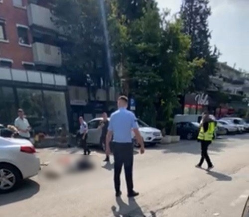 Според фотографиите од лице место, телото на мажот кој најверојатно бил мета на сторителот или сторителите лежи на улица.