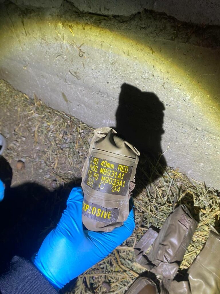 Во средата полициски екипи во атарот на Општина Арачиново пронајде еден пушкомитралез, девет автоматски пушки, повеќе празни рамки за автоматска пушка и реденик за пушкомитралез, две рамки за автоматска пушка со куршуми, една тегла со муниција, ранец и други предмети.