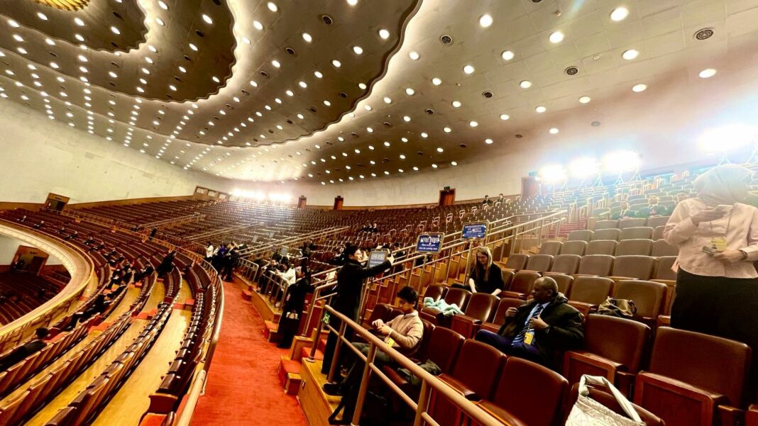 Во Големата народна сала на плоштадот Тјенанмен во Пекинг деновиве се одржуваат т.н. „две сесии“ – седници на Собранието на народните претставници, највисокиот државен орган на власта, и на Народна политичка консултативна конференција, водечка политичка консултативна организација. Со години секој март во Пекинг паралелно се одржуваат овие седници, кои се најважниот политички настан во Кина. Во двете тела членуваат по 3.000 пратеници и делегати. Годинава акредитирани се 2.000 новинари од Кина и 1.000 од странство. Тоа значи дека безмалку 10.000 луѓе во текот на 10 дена секојдневно се тука. Сето тоа треба некако да се организира, сообраќајот да е регулира, сите новинари да ја добијат потребната информација, изјава, интервју... И сѐ е под конец. Секој најавен настан почнува во секунда. „Двете сесии“ се сѐ уште во тек, и на сите ни е јасно дека Кина влегува во нов циклус на планирање, дека Кина продолжува да го менува глобалниот пејзаж, дека тука се пишува иднината.