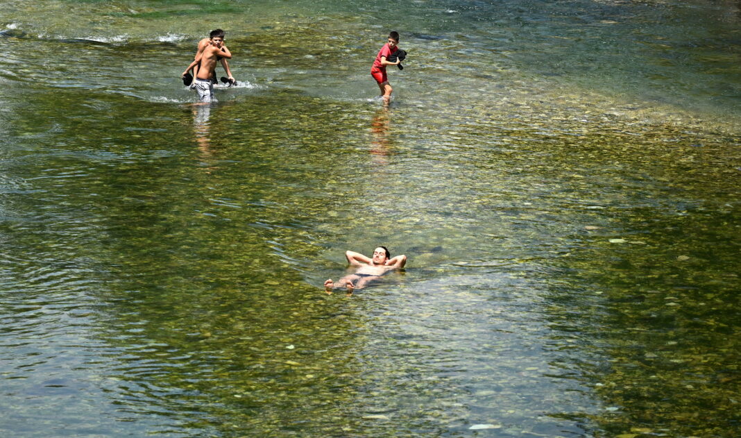 A man cools off in the Treska River near Skopje on June 26, 2025, as a heat wave grips North Macedonia with temperatures soaring to 40°C.