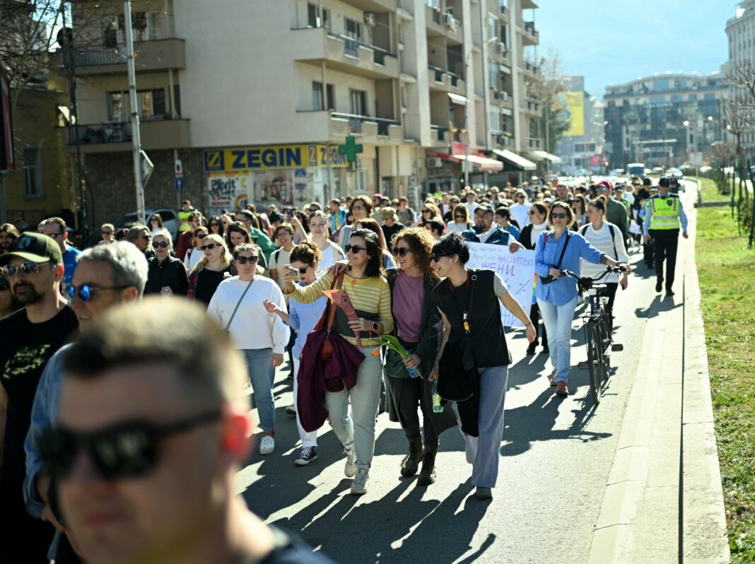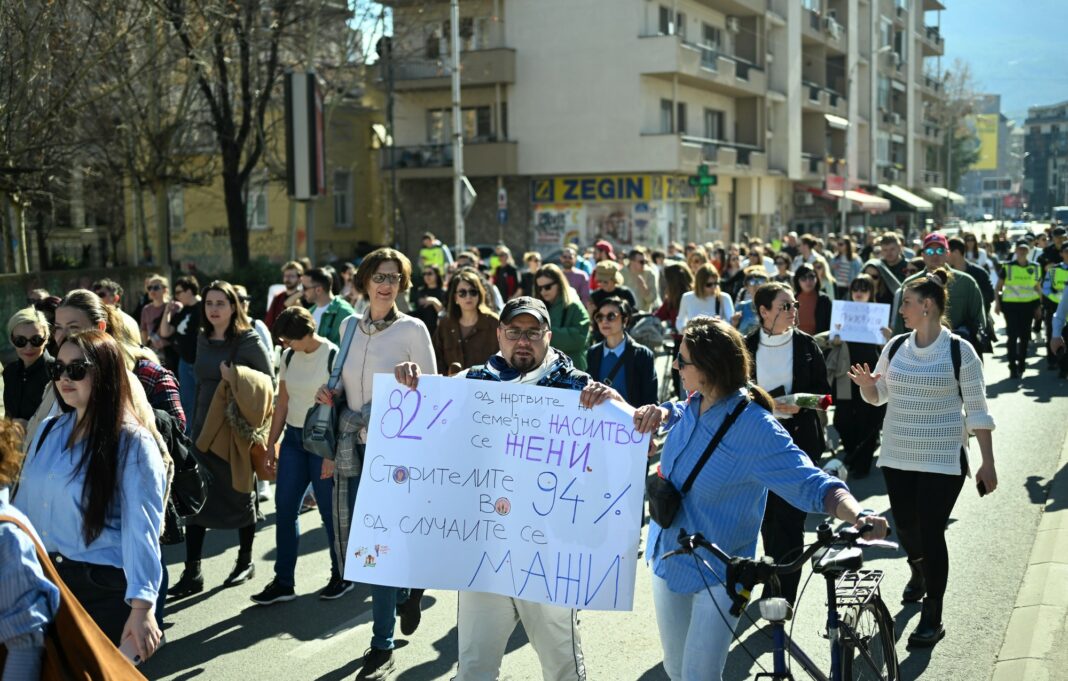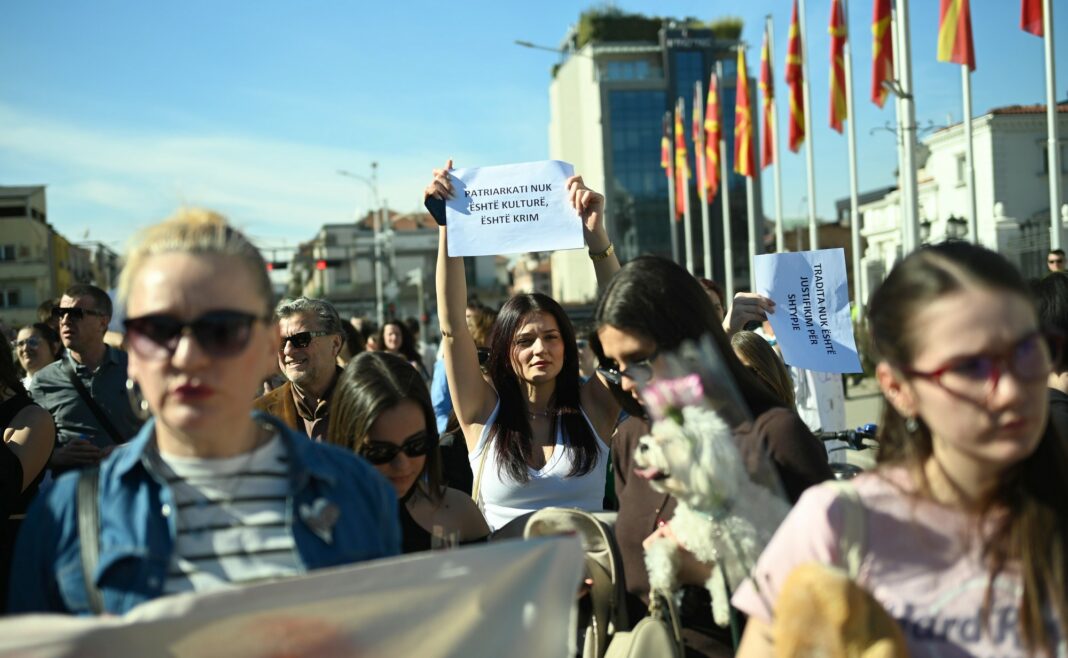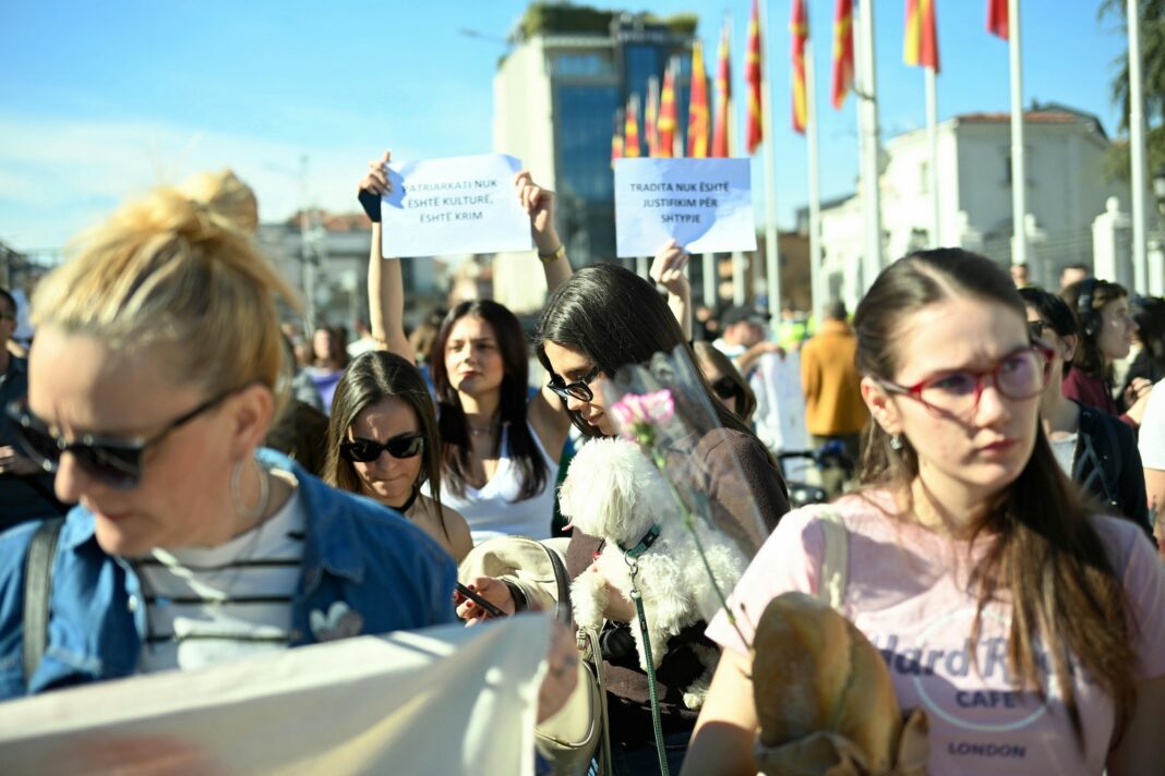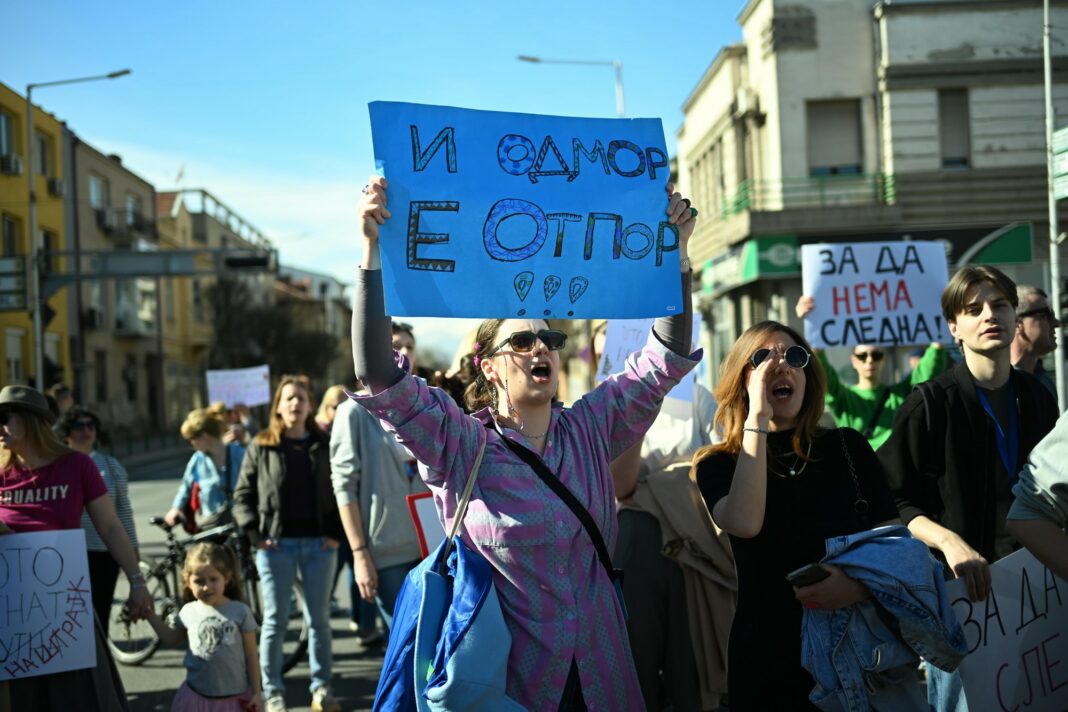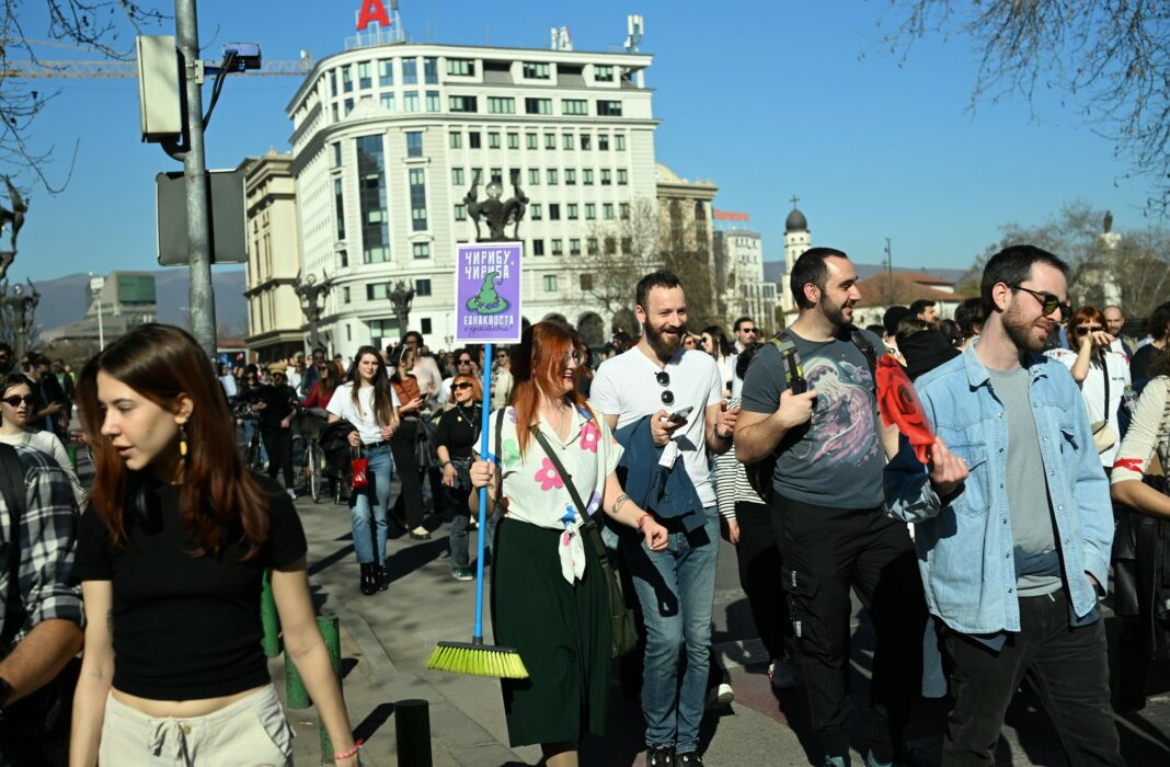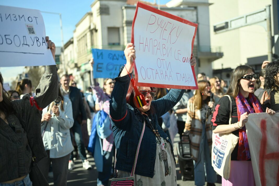 Activists from North Macedonia march under the slogan: Let them eat roses! during the International Women's Day in Skopje on March 8, 2025