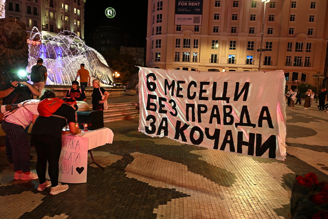 „Шест месеци без правда за Кочани“, беше главната порака што стотици скопјани ја испратија денеска од плоштадот, за трагедијата во дискотеката „Пулс,“ каде што 62 млади луѓе загинаа, а над 200 беа повредени. Со светлина од мобилните телефони направија „Ѕвездено небо“ за загинатите во пожарот. На маса поставена на плоштадот беа напишани пораки за поддршка на семејствата на оние што ги загубија животите во трагедијата. Учесниците стоеја во молк 16 минути, симболизирајќи го датумот 16 март кога се случи трагедијата. Настанот беше во организација на движењето „Кој е следен?“
