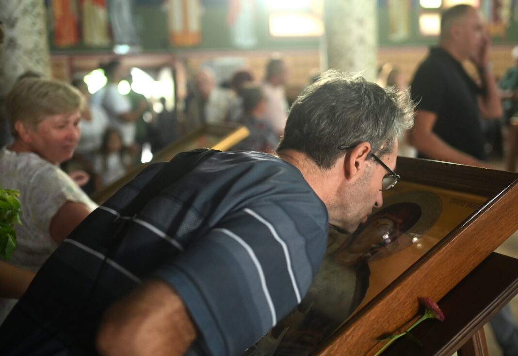 Православните верници денеска го слават празникот Успение на Пресвета Богородица, кај народот познат и како Голема Богородица. Еден од најголемите христијански празници кога се одбележува земниот крај на Пресвета Богородица, денот кога таа се вознесе на небото и го предаде својот дух во рацете на Спасителот. Во сите храмови на МПЦ-ОА, особено во оние кои го носат нејзиното име, денеска се одржуваат празнични богослужби. Eве како денеска изгледаше во црквата Рождество на Пресвета Богородица во Скопје.