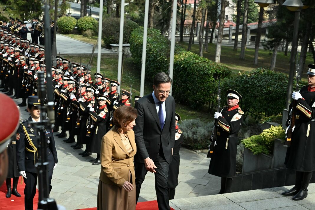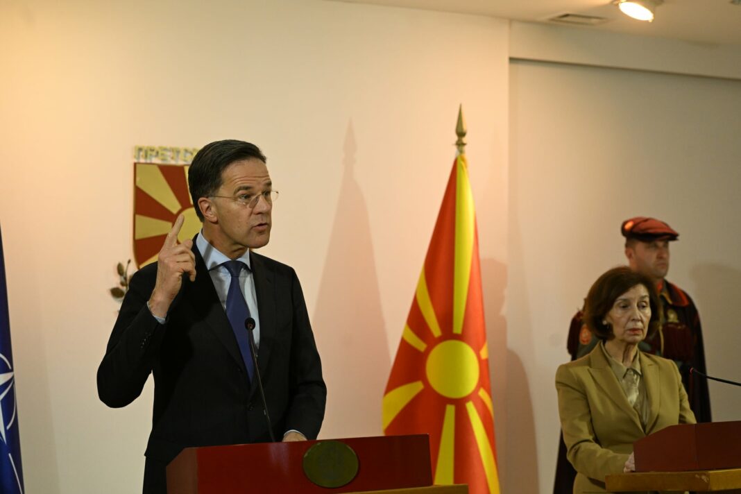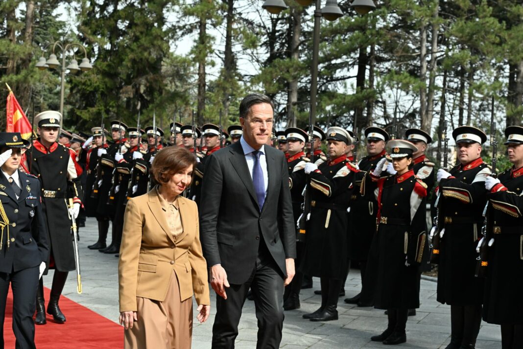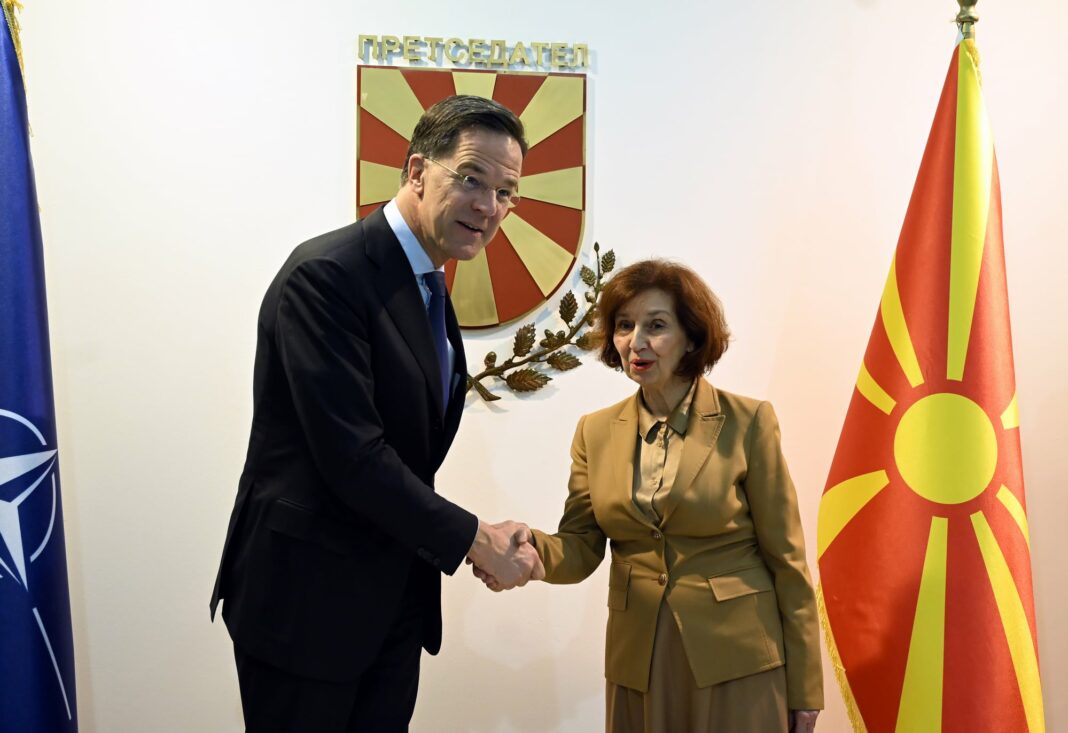 Во динамична атмосфера во главниот град, претседателката Гордана Сиљановска-Давкова и генералниот секретар на НАТО, Марк Руте, разговараа за предизвиците што ја обликуваат европската безбедносна мапа. Средбата испрати јасен сигнал дека земјата останува активен чинител во Алијансата, со фокус на стабилноста и заедничката одговорност. Во собраниската сала при обраќањето на Руте пратениците на Левица во знак на протест накратко излегоа со транспарент „НАТО убива за профит!!!“, па се повлекоа.