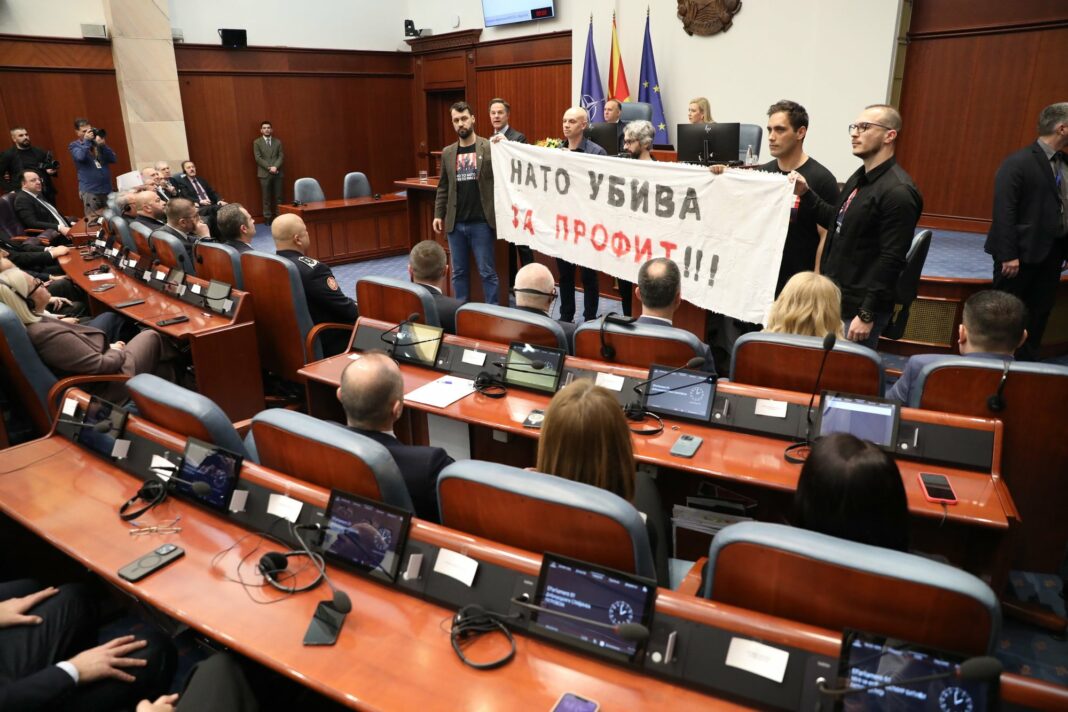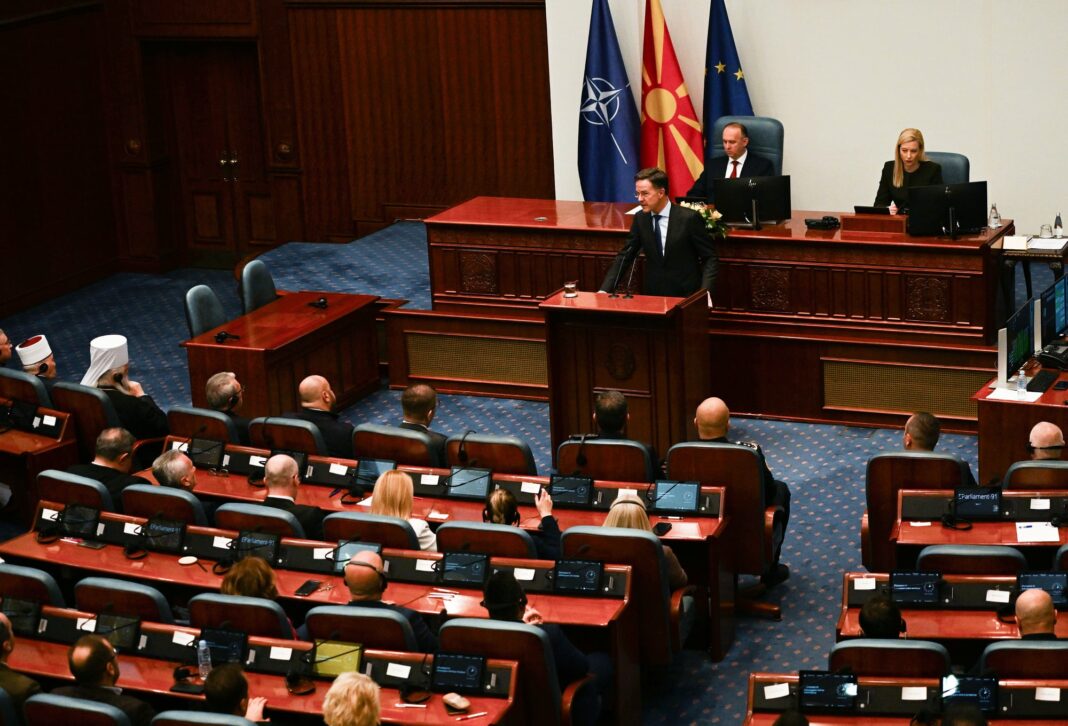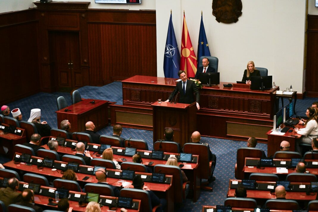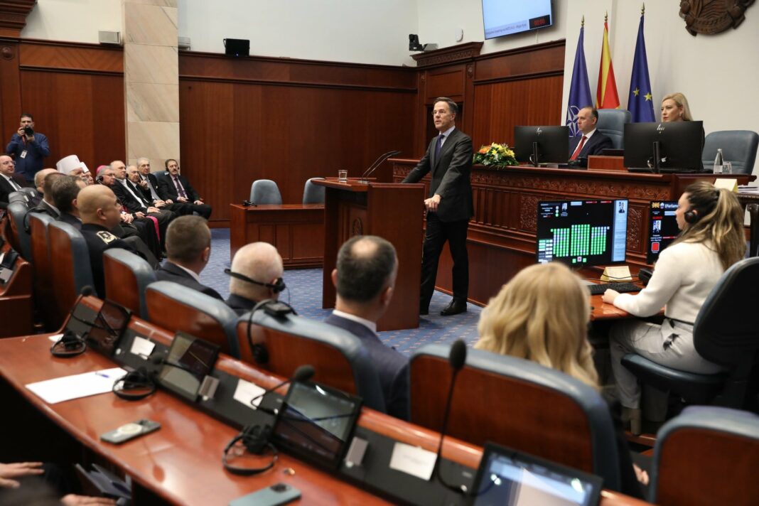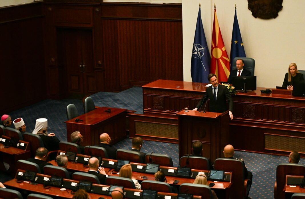 Во динамична атмосфера во главниот град, претседателката Гордана Сиљановска-Давкова и генералниот секретар на НАТО, Марк Руте, разговараа за предизвиците што ја обликуваат европската безбедносна мапа. Средбата испрати јасен сигнал дека земјата останува активен чинител во Алијансата, со фокус на стабилноста и заедничката одговорност. Во собраниската сала при обраќањето на Руте пратениците на Левица во знак на протест накратко излегоа со транспарент „НАТО убива за профит!!!“, па се повлекоа.