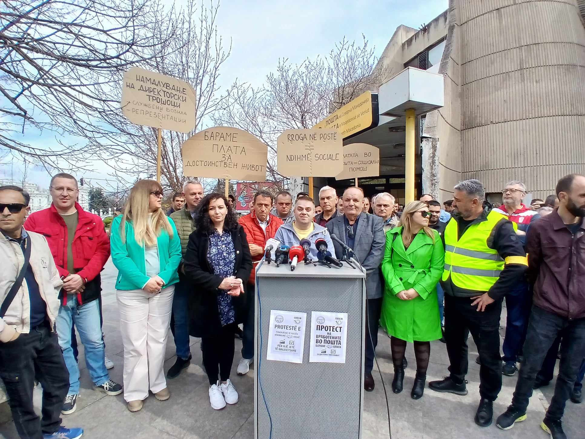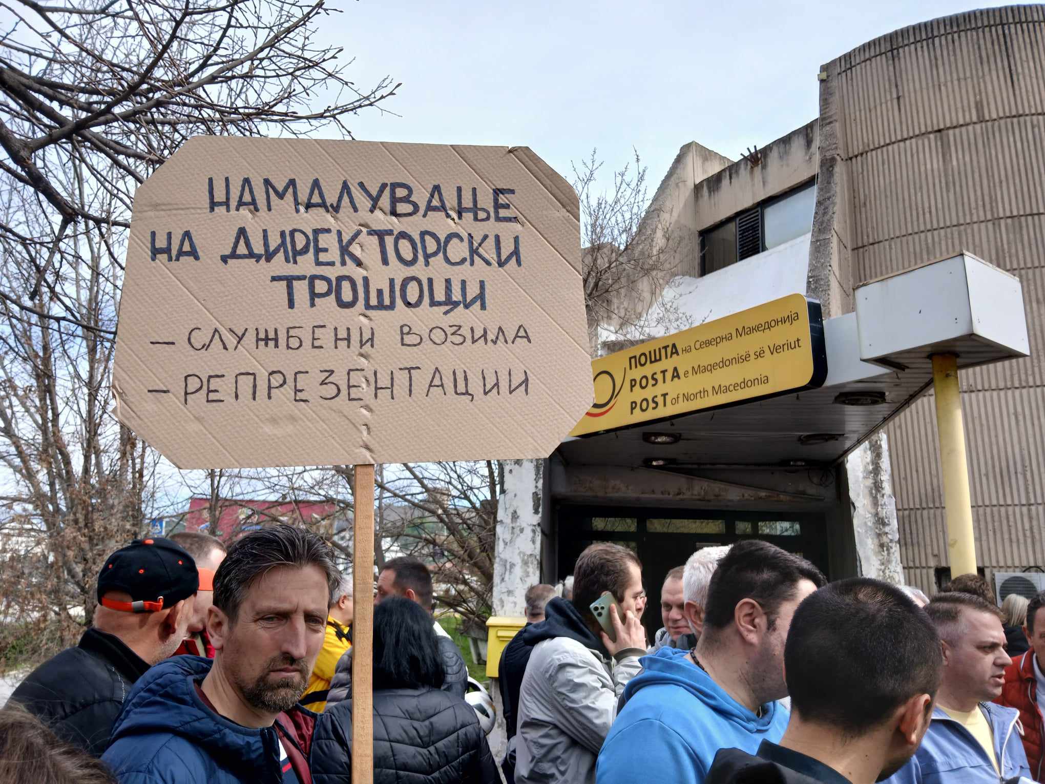 „Повеќе пати разговаравме со новиот директор, но не добивме конкретен одговор кога ќе има исплата на плата. Сведоци сме дека денеска нема плата за работниците, а законскиот рок е до 15-ти во месецот. Моментално се 1.800 вработени и околу 200 поштари на договор. Исто така, бараме и да се реши статусот на поштарите, кои работат за минимална плата и без здравствено осигурување“, рече претседателот на Синдикатот на Македонска пошта, Боро Велигденов.