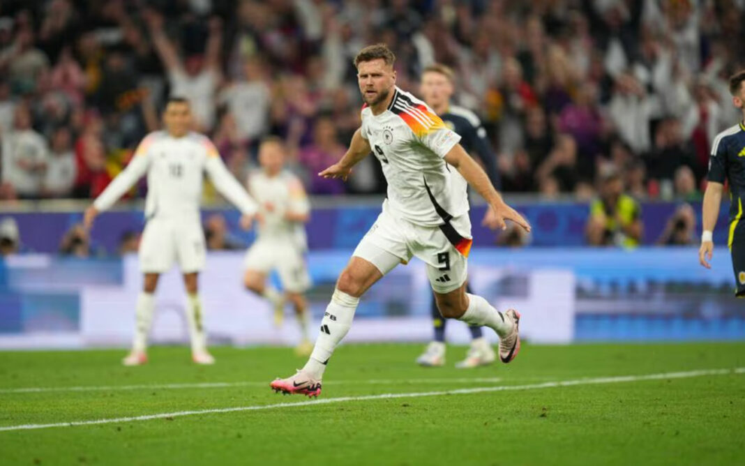 Германија тргна фуриозно, по само 10 минути игра поведе со 1-0. Првиот гол на Европското првенство беше дело на Флоријан Вирц кој погоди со шут надвор од шеснаесетникот по асистенција од Кимих.
