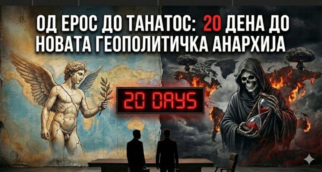 Ова не е само метафора. Танатос, нагон за уништување, денес доминира над Ерос – нагон за создавање. Либералната илузија за крајот на историјата се распрснува пред нашите очи. Влегуваме во свет каде силата, а не правото, ќе биде единствената валута.