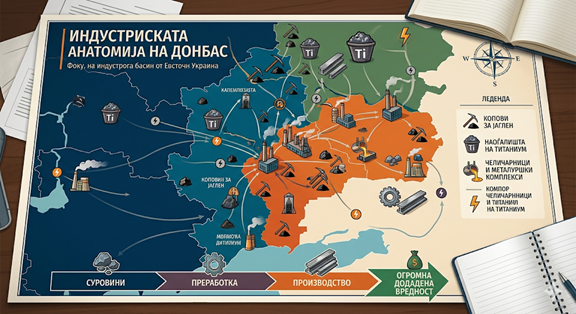 Донбас не е само територија со рускојазично население и политички поделени лојалности. Донбас е еден од ретките големи заокружени индустриски басени во Европа, регион во кој децении се вкрстувале рударството, енергетиката, металургијата и тешката индустрија. Тоа е простор каде може да се копа јаглен, да се произведува енергија, да се експлоатира железо, титаниум и други руди, а потоа тие суровини да ги се вметнат во локални металуршки процеси и индустриски синџири со огромна додадена вредност. Во тој екосистем постојат и гигантски индустриски преси, инфраструктура што не може едноставно да се пресели, како и фабрички капацитети способни да бидат важен дел од воено-индустрискиот комплекс. Кога се споменува Краматорск, не станува збор само за географска точка на картата, туку за симбол на тоа колку индустријата и војната се испреплетени во овој конфликт. Губењето или контролирањето на таков регион драматично ја менува економската и воената крвна слика на секоја држава.