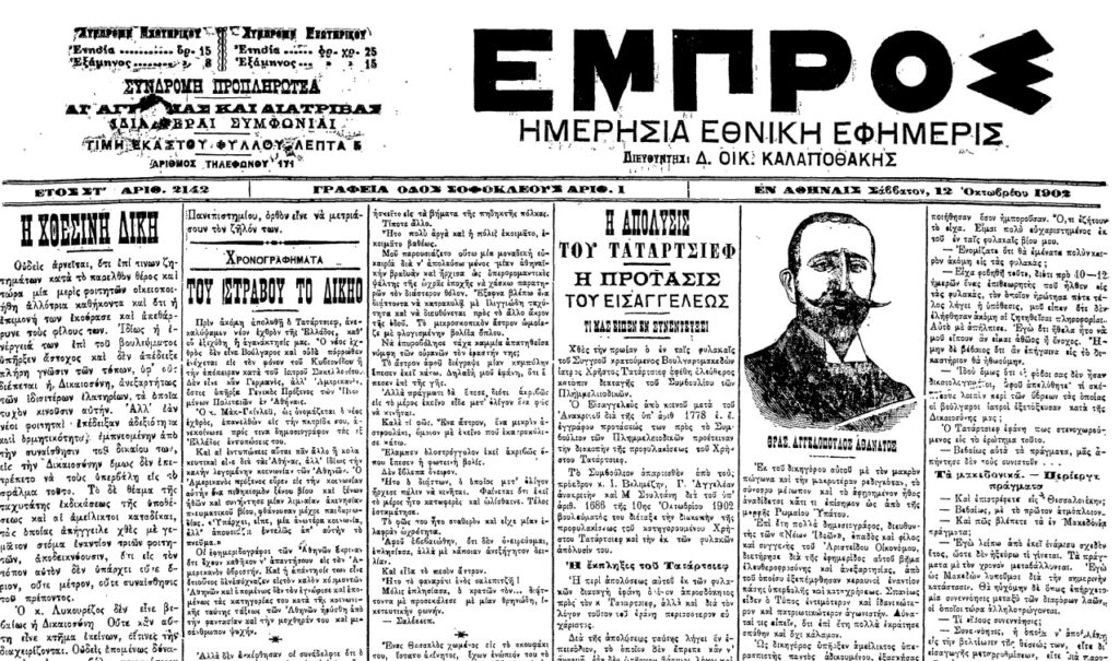 Со ова ослободување завршува една епизода која не требаше ни да се случи, ако немаше основани причини и непобитни докази. Правдата, преку својата истрага, не најде елементи за вина против Татарчев. Толку подобро за него. И толку полошо за неа (правдата, б.м.), ако не можела да најде докази, доколку такви постоеле. Како и да е, грчката правосудна власт си ја изврши својата должност. Без разлика дали пред себе имаше невин или виновен човек, го пушти на слобода, бидејќи ништо не можеше да ја убеди во неговата вина. И бугарските колеги на ослободениот Татарчев ја примија навредата директно во лице, навреда која сакаа да ја упатат кон грчката правда, нарекувајќи ја неспособна. Но излишно е да се занимаваме понатаму со професионалните навредувачи од Софија на сè што е грчко.