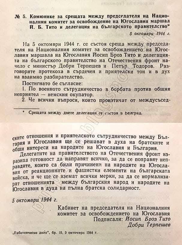 Неколку години подоцна, заради Резолуцијата на Информбирото, се случува фамозната поделба помеѓу Тито и Сталин, а со тоа и на повоена Југославија со земјите од Источниот блок, во чии рамки тогаш веќе е и Бугарија.