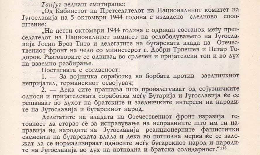 Известувањето на Танјуг за спогодбата во Крајова: Слободан Нешовиќ “Југословенско-бугарските односи во неодамнешното минато“, НИП Нова Македонија, Скопје, 1973, страница 55.