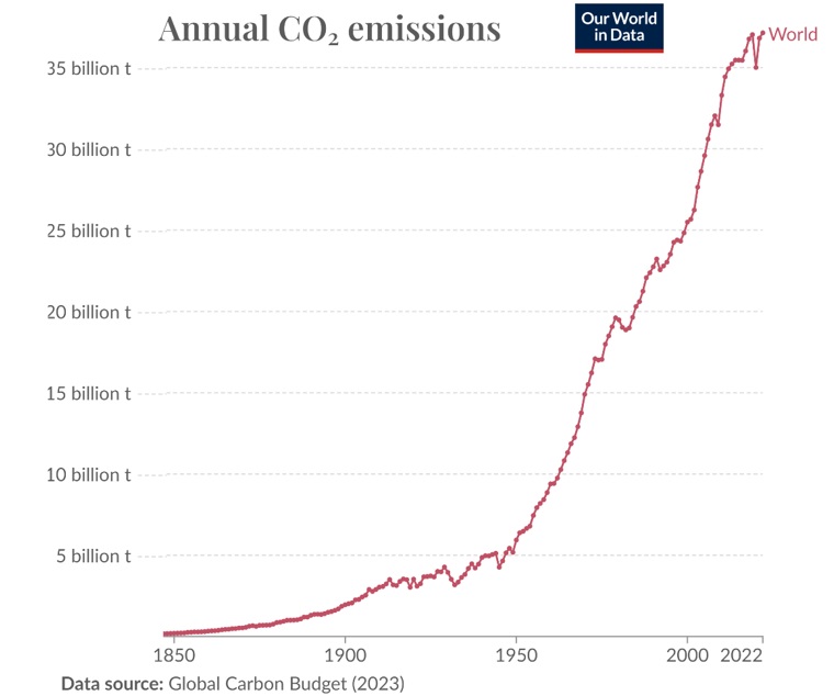 Но ајде да ја погледнеме фактичката состојба. Како што се гледа на дијаграмот на сликата подолу, трендот на зголемување на емисиите на СО2 постојано се зголемува и покрај напорите на меѓународните и националните тела.