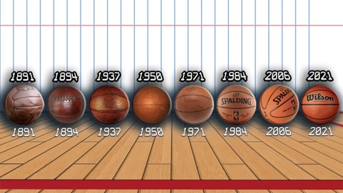 На почетокот се користеле фудбалски кожни топки, но тие не биле погодни за овој спорт. Лесно се лизгале и не биле адекватни за рачно водење и дриблинзи. Во 1894 година, Нејсмит контактирал со А.Г. Спалдинг и Брос, со барање да направат топка за кошарка. Компанијата произвела кожна топка споена со врвки, со тежина нешто помала од 500 грама и со обем од 80 см, поголема од фудбалска топка за 10 см. На Нејсмит топката му се допаднала и кон крајот на 1890-те, Спалдинг станал официјален производител на кошаркарски топки. Во 1929 година, кошаркарските топки биле редизајнирани за поголемо отскокнување и со скриени врвки за да се елиминираат неправилните отскокнувања. Овие топки биле поголеми, полесни и поадекватни за водење.