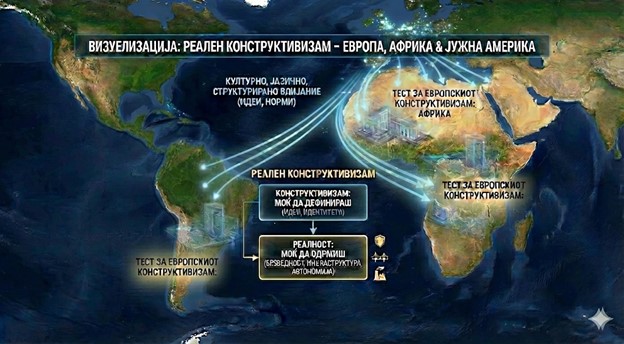 - Конструктивизам: Моќта да се дефинира што е нормално – предност што Европа веќе ја поседува во Јужна Америка преку споделените културни кодови.