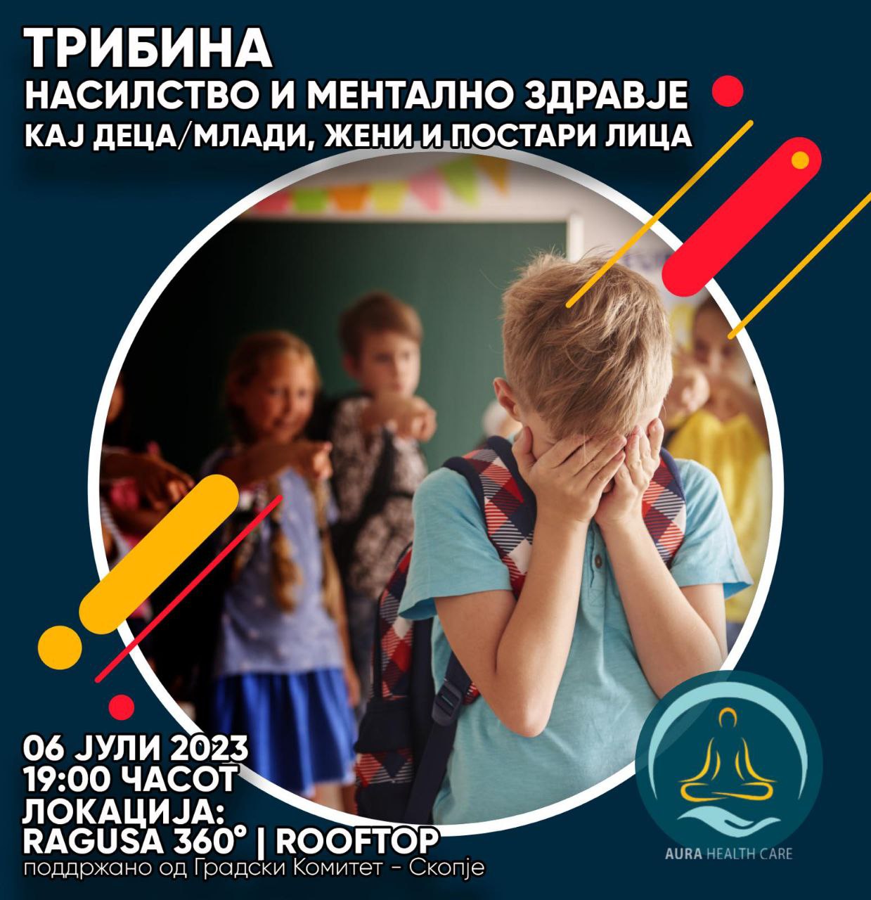 Поставувајќи си ги сите овие прашања, силно ме израдува најавата дека денеска, 6 јули, во 19 часот, во локалот Рагуза 360 степени (на отворениот покрив) во центарот на Скопје ќе се одржи научна трибина посветена на влијанието на насилството врз менталното здравје на деца и млади, но и на жени и стари лица во криза.