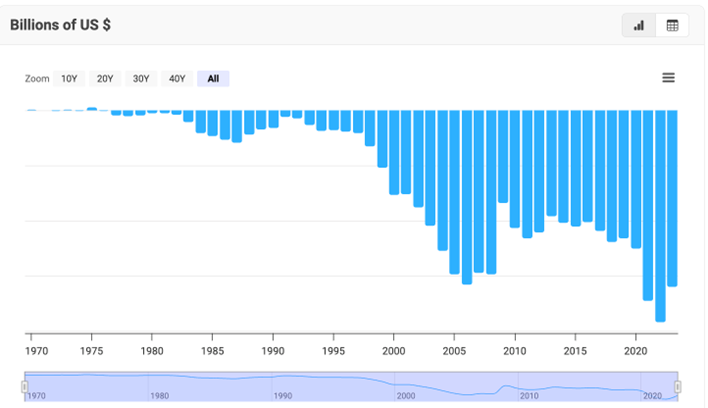 Графикон 2: Американскиот трговски дефицит во милијарди долари