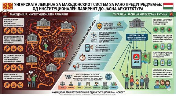 Унгарската лекција не е дека треба механички да копираме туѓ модел. Лекцијата е поедноставна и подлабока: функционалниот систем не почнува од апликацијата, туку од институционалната јасност. Ако Македонија не го направи тој чекор, ќе продолжи да живее со скапа, но неповрзана архитектура. А следната криза, како и секогаш, нема да чека ние конечно да го најдеме излезот од сопствениот институционален лавиринт.