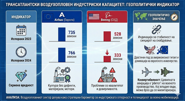 Прашањето што „чеша“ е следното: Ако Европа може да испорача таков индустриски обем и квалитет во цивилен авион, колку брзо и длабоко би можела да го пренасочи тој капацитет кон следната генерација воени платформи?.