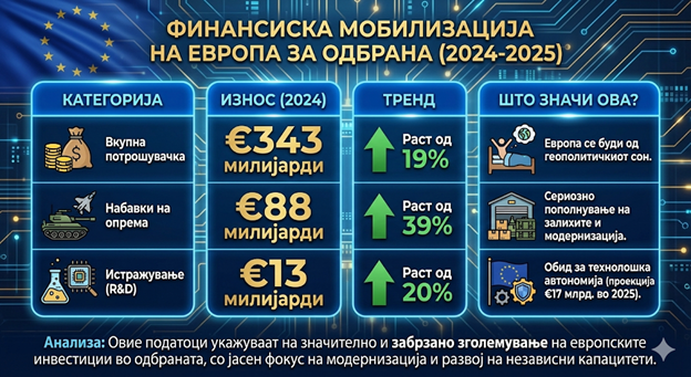 Ова е сигнал дека Европа се обидува да го затвори индустрискиот и буџетскиот јаз. Но, тука доаѓа клучниот пресврт: повеќе пари не значи автоматски повеќе моќ, ако набавките се фрагментирани, ако одржувањето е скапо и ако интероперабилноста остане „на хартија“. Затоа, прашањето за разводот не е само „колку плаќаме“, туку како го претвораме плаќањето во заедничка инфраструктура.