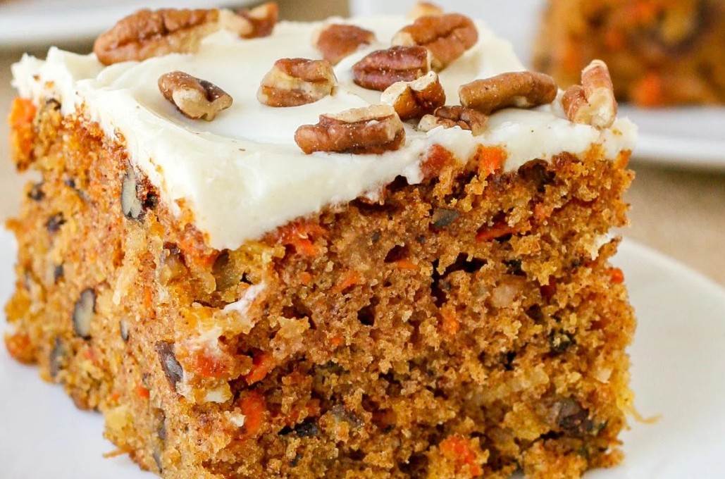Додајте ја смесата од моркови и ореви. Истурете ја целата смеса во подготвениот калап за торта.