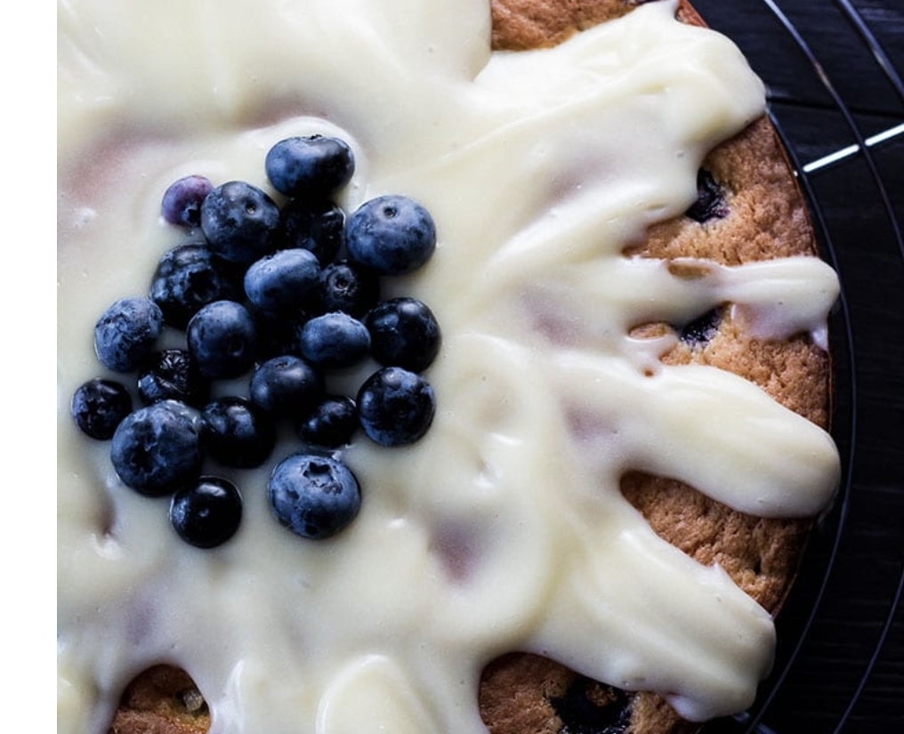 Истурете ја смесата рамномерно во калапот и распоредете ги преостанатите боровинки одозгора.