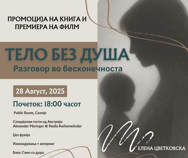 – Тело без душа за мене е слика на најголемата вистина која ја доживеав, дека телото умира, се враќа во земјата, а душата продолжува понатаму кон својот извор. Тоа не е само зборовен израз, туку реално доживување кога ја изгубив мајка ми. Кога почнав да ја пишувам книгата, овој наслов најмногу резонираше со мене. Го замислував како симбол кој веднаш ќе отвори прашање кај читателот: што сме ние навистина, дали само тело што се распаѓа, или душа која живее вечно? За мене лично, Тело без душа значи и прифаќање на болката. Болно е да се изговори, но токму затоа е и храбро. Тоа е мојот потсетник дека смртта не е крај туку премин, телото завршува, но душата продолжува.