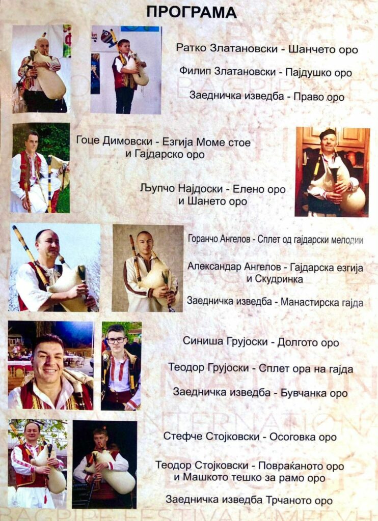 Фестивалот е посветен исклучиво само на гајдата и гајдаџиите, а вечерва ќе настапат неколку генерации на гајдаџии (татковци и синови, дедовци и внуци ).