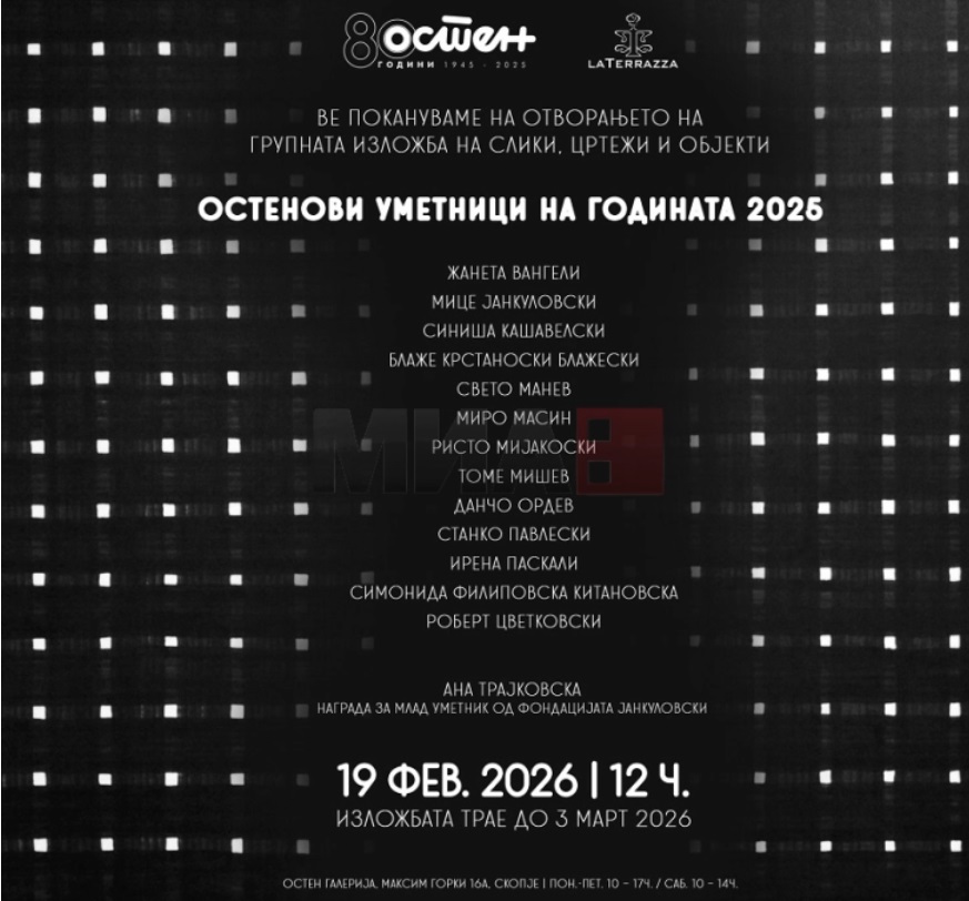 „Остенови уметници за 2025 година“ се Жанета Вангели, Мице Јанкуловски, Синиша Кашавелски, Блаже Крстаноски Блажески, Свето Манев, Миро Масин, Ристо Мијакоски, Томе Мишев, Данчо Ордев, Станко Павлески, Ирена Паскали, Симонида Филиповска Китановска и Роберт Цветковски.