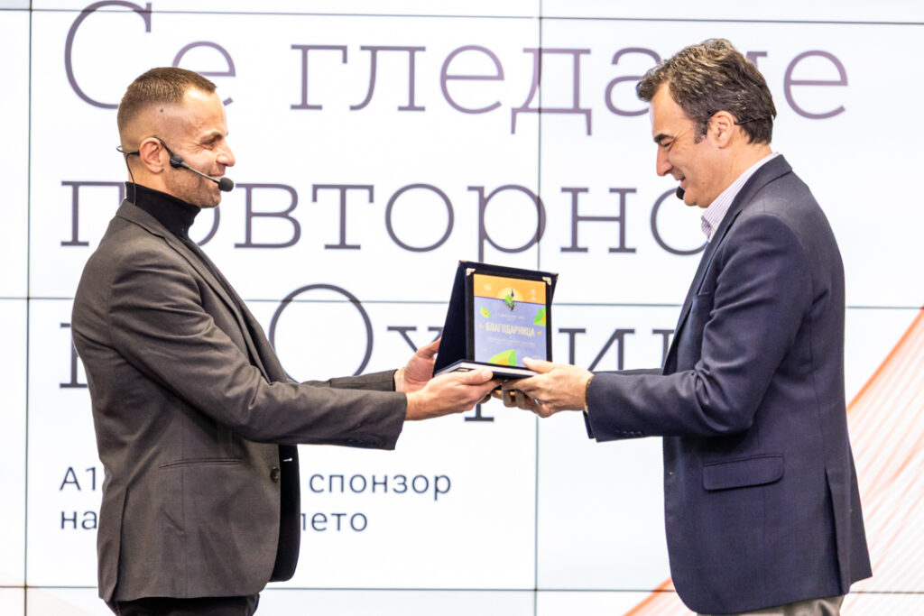 Во знак на признание за континуираната поддршка и зајакнувањето на фестивалските иницијативи, директорот на НУ „Охридско лето“ на овој настан му врачи симболична благодарница на главниот извршен директор на A1 Македонија, Методија Мирчев.