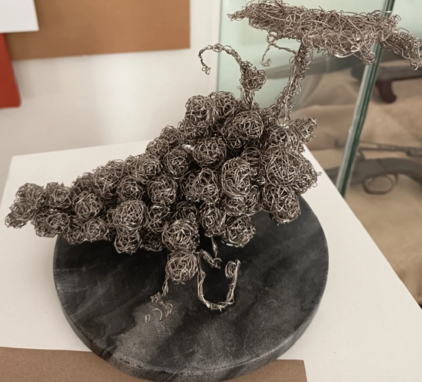 Зорица Ташовска Илова, кустос историчар на уметност во Музејот, рече дека станува збор за уникатна уметница која инспирирана од автохтоната сорта грозје „станушина” којашто е симбол на Тиквешкиот регион и неговата вековна традиција, ја претвора лозата и гроздот во скулптурална форма.