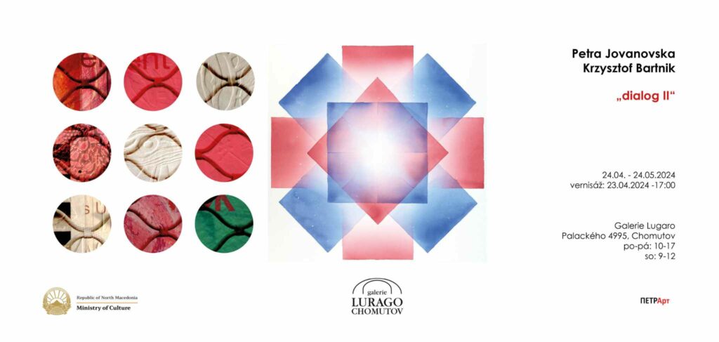 Во галеријата Лураго во Хомутов, Чешка, во тек е друга изложба на Јовановска „Дијалог II“. Петра Јовановска го продолжува ликовниот дијалог со колегата Кршиштоф Бартник од Полска. Таа со своите ликовни дела кои се создадени со имплементација на македонскиот јазик направи обид за еден ликовен дијалог во Чешка, место кое го посетиле Св. Кирил и Методиј и каде овие наши просветители играат значајна историска улога. Петра Јовановска подолг период ги истражува геометриските облици, се води со нивната симболика, ги користи различните ликовни техники, честопати ги спојува да го дојде до саканиот ефект. Авторката со визуелно истражување прави обид за доловување на амбивалентност на присутност и неприсутност на физичко битие. Во содржинска смисла делата поседуваат многу автобиографски предзнаци, со многубројни прашања од лична природа. Со користење на македонскиот јазик, како еден линеарен ликовен израз ја надградува својата визуелна перцепција, се обидува да ја истражи ликовната емоција и да ѝ даде една видлива содржина. Како графичар по вокација ги користи графичката техника, како што е сув печат. Исто така тежнее и кон дигитална графика и често пати ги спојува во еден полиптих. Се обиде да создаде еден ликовен дијалог со квадратот, централниот елемент во творештвото на колегата Кршистоф Бартник.