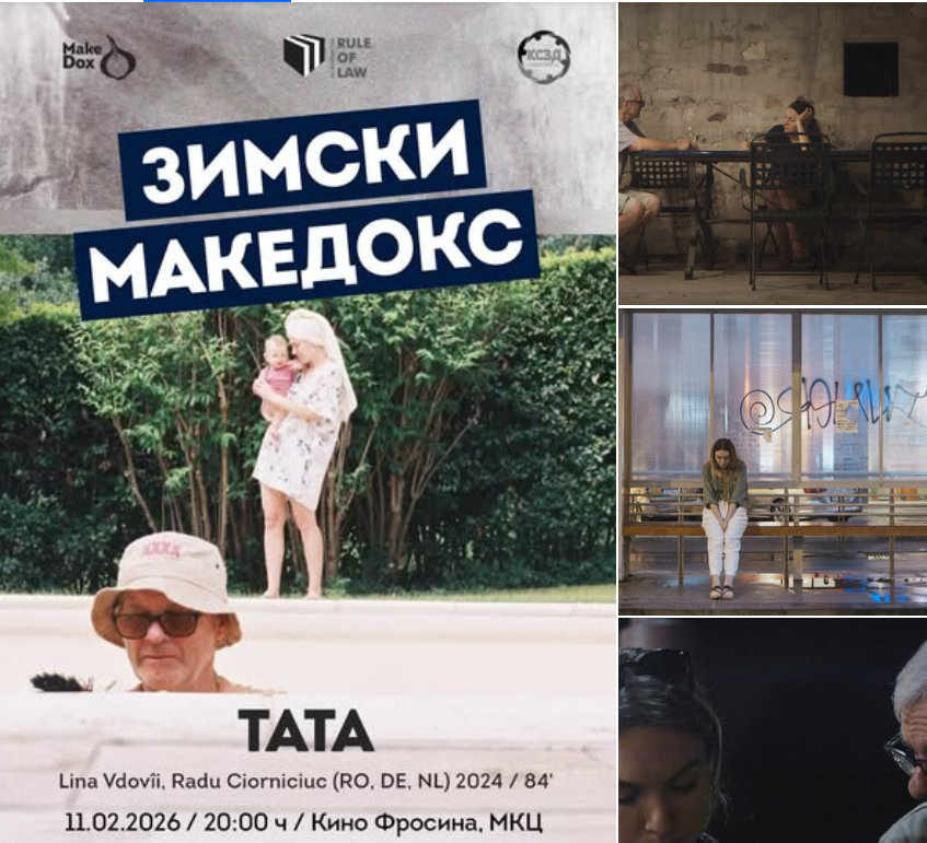 Проекцијата на документарниот филм „Тата“ (Романија / Германија / Холандија, 2024, 84 мин.) ќе се одржи денека во 20 часот, во киното „Фросина“ во Младинскиот културен центар во Скопје, а влезот на проекцијата е слободен.