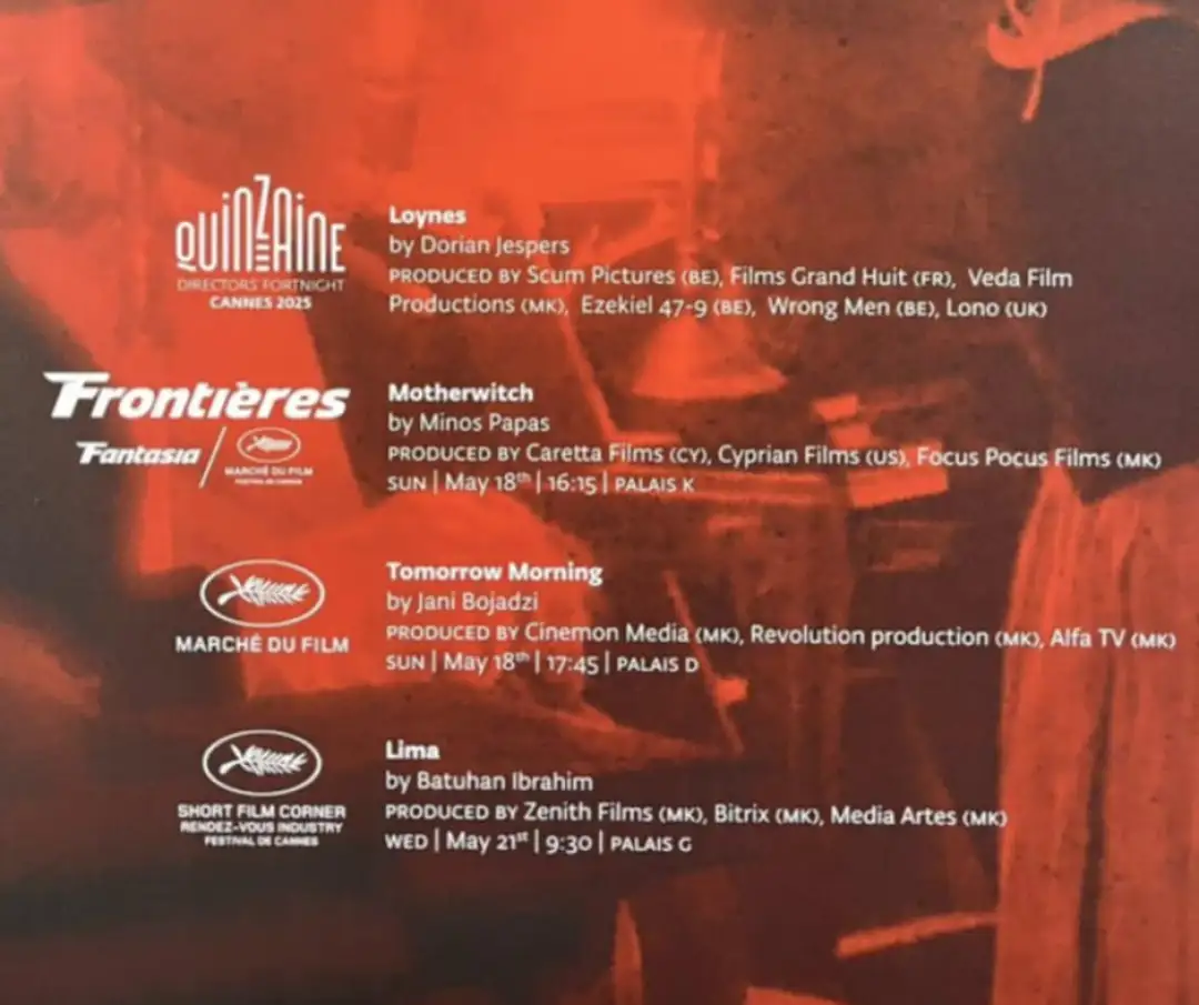 „Лојнс“ во режија на Доријан Нур Жесперс е малцинска копродукција што е дел од престижната програма Директорс фортнајт; „Додакамерон“ на Минос Папас е вклучен во програмата Фронтиерс за проекти во пост-продукција; „Утре наутро“ на Јани Бојаџи ќе има проекција во рамките на филмскиот маркет со поддршка од Агенцијата, а краткометражниот филм „Лима“ на Батухан Ибраим е вклучен во Шорт фил корнер.