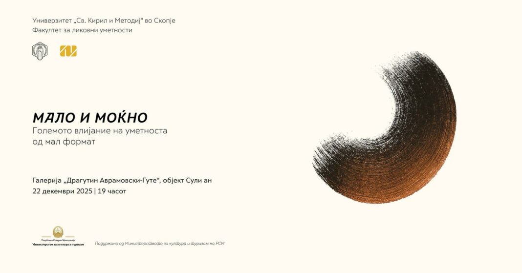 Изложбата има за цел да ги афирмира изразните потенцијали на малиот формат во современата ликовна практика, покажувајќи дека токму во малото често се крие најголемото влијание. Таа ќе биде отворена за посетители секој работен ден од 8 до 17 часот до 15 февруари 2026 година, и е од продажен карактер. Изложбата се реализира со поддршка од Министерството за култура и туризам на Македонија.
