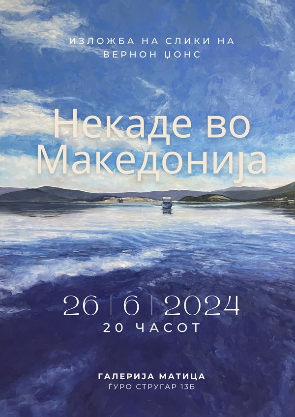 Вечерва во галеријата Матица во Скопје ќе се отвори изложба на слики на Вернон Џонс (Велс, Обединето Кралство). На изложбата ќе бидат претставени триесетина дела создавани и инспирирани од македонскиот пејзаж.