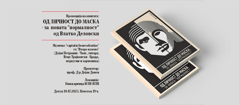 На оваа неовообичаена промоција, ќе зборува проф. д-р Дејан Донев, а љубителите на книгата ќе уживаат и во свежите музички креации на „captatio benevolentiae” со „Второ колено” – Дејан Петровиќ (Чапс) вокал и гитара и Пеце Трајковски (Брада) на перкусии и хармоника.